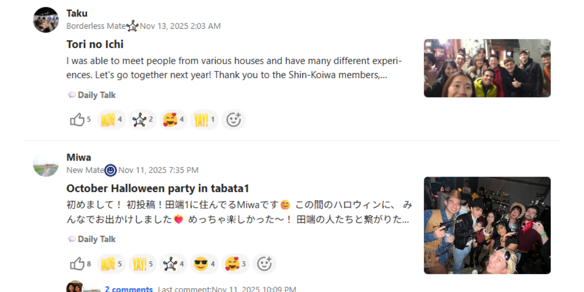 Its purpose is simple: to bring Borderless Mates together in one place, no matter where they are. Across Japan, Korea, Taiwan, and more than 120 countries, people continue their journeys, but the desire to stay connected always remains.