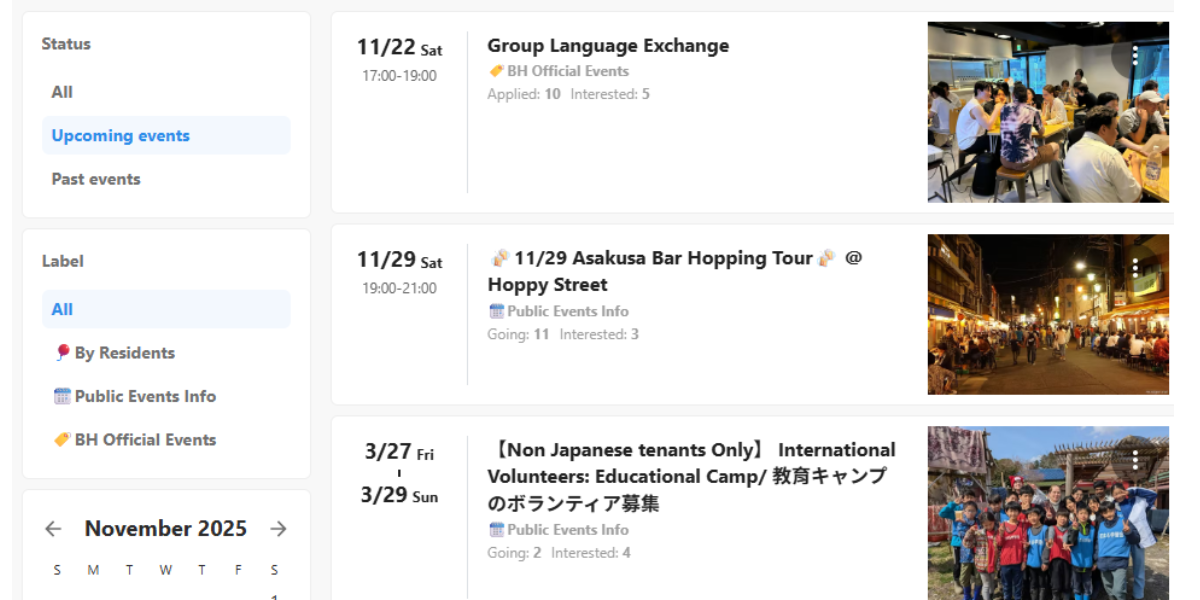 JOIN EVENTS lets you discover what’s happening in the community — instantly. You’ll receive real-time updates on upcoming activities and can join with just a tap, whether the event is hosted by Borderless House or created by residents themselves.
