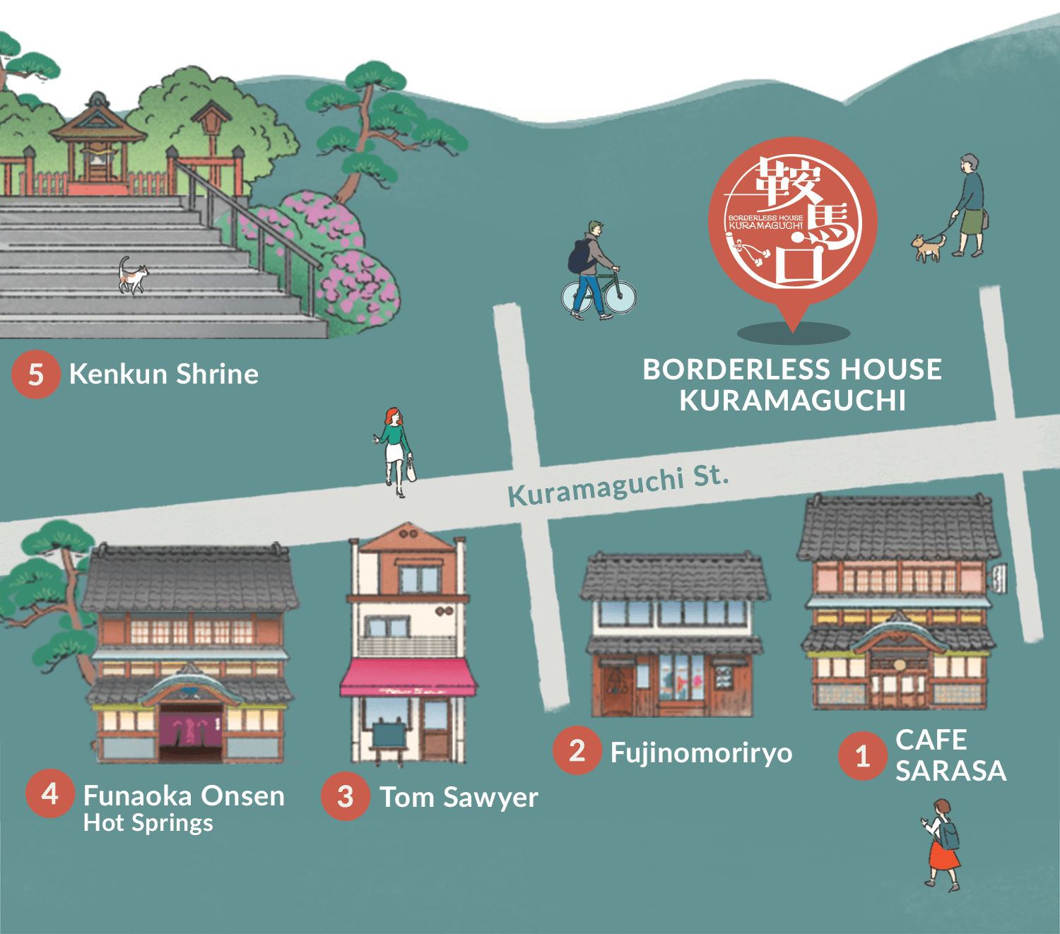 Experience living in a multicultural and multigenerational environment. Collaborate with nearby stores, participate in community events, and enjoy a fulfilling life at Borderless House Kyoto-Kuramaguchi!