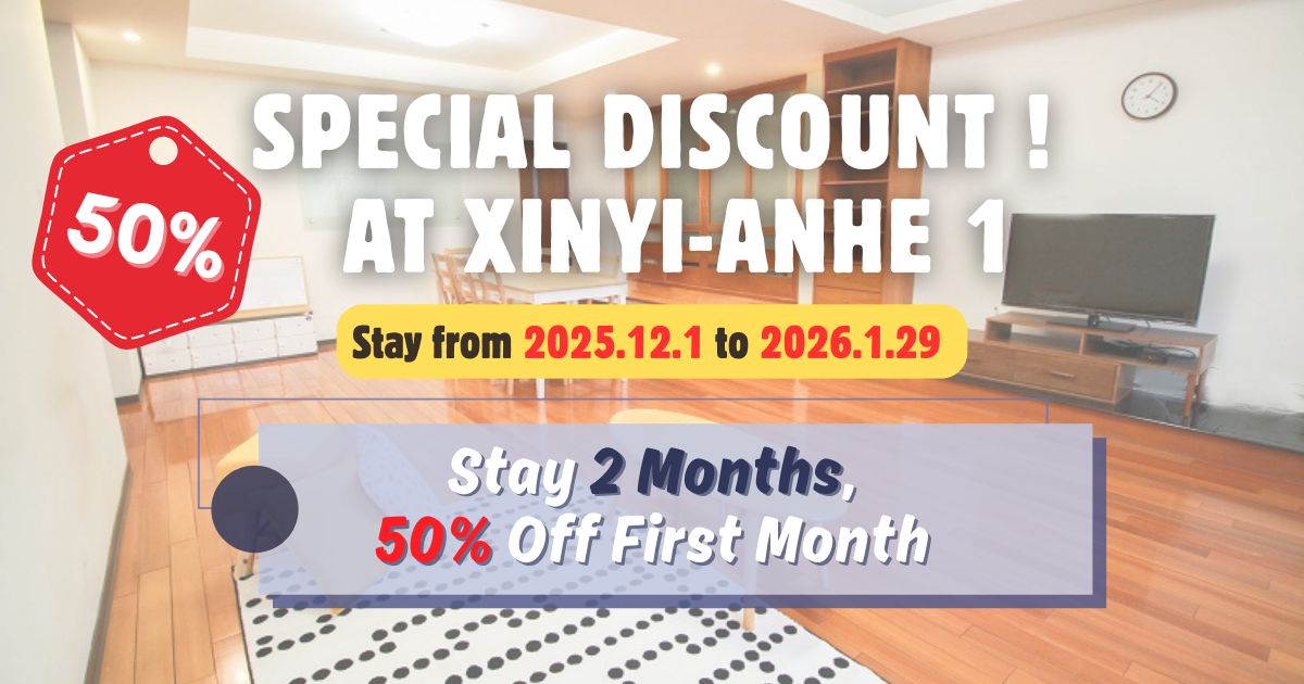 Xinyi-Anhe 1 Share House’s short-term stay program has officially launched! Enjoy lower rent than other BORDERLESS HOUSE houses, and if you stay the entire two months, you'll benefit from an extra discount!!!